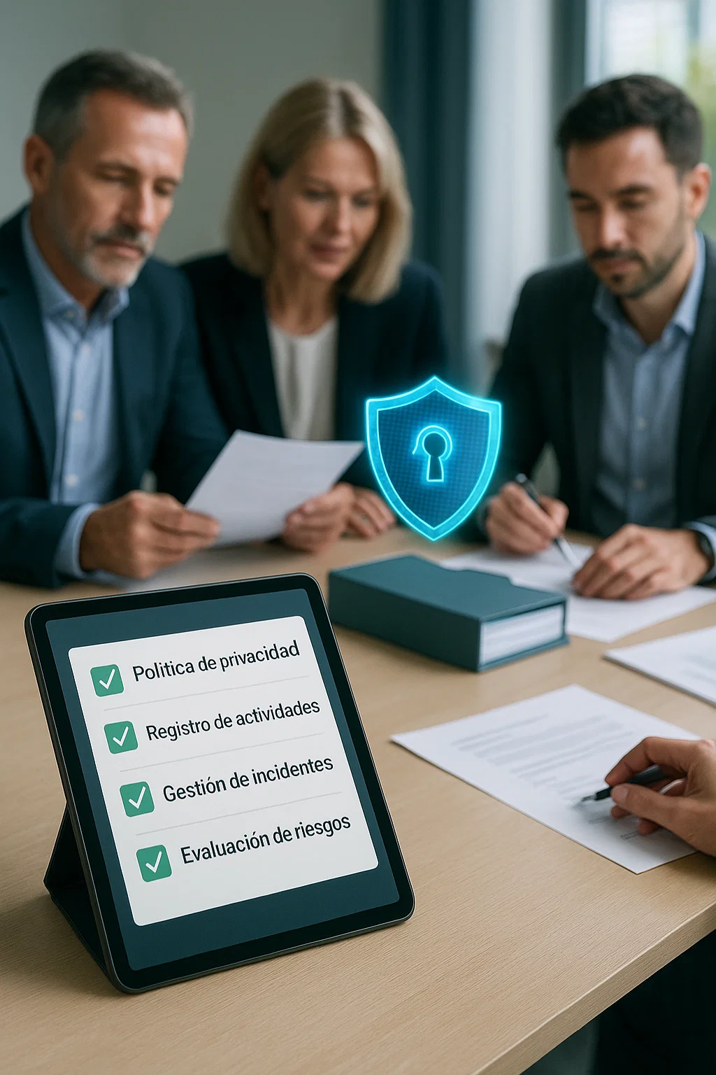 Identificamos tu nivel de madurez en protección de datos: inventario de tratamientos, bases de legitimación, consentimientos, contratos con encargados, medidas de seguridad y riesgos por área.
